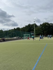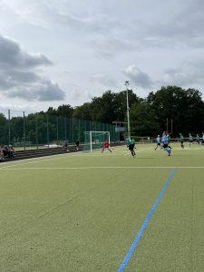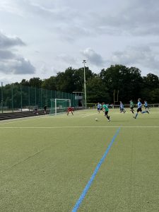 In der 34. Minute hatten wir Glück, als der Gegner vom 16er an den Pfosten schoss. Doch in der 37. Minute gelang es uns erneut in Führung zu gehen. Ein Pass von Mo auf Linus, der sich erfolgreich durchsetzte und den Ball scharf unten links ins Tor platzierte.